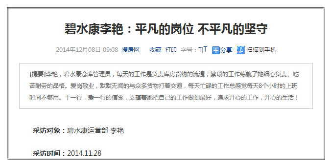 采訪對象:碧水康運營部 李艷