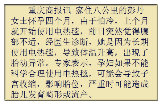 專家提醒:孕婦取暖,慎用電熱取暖設(shè)備!