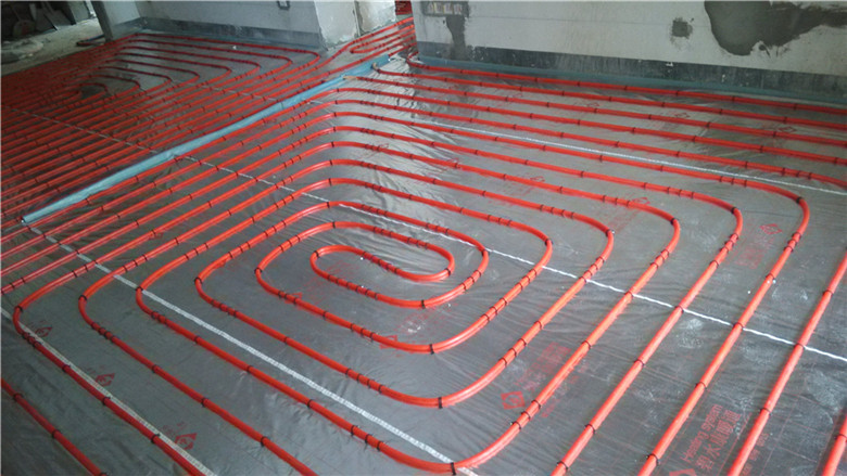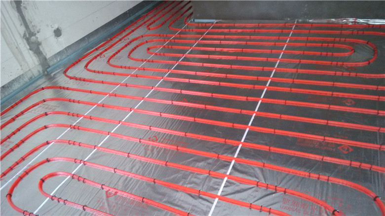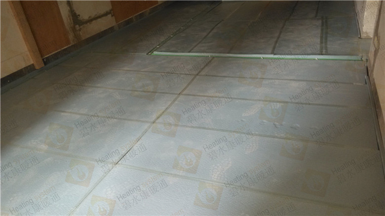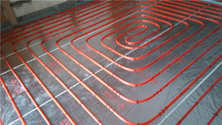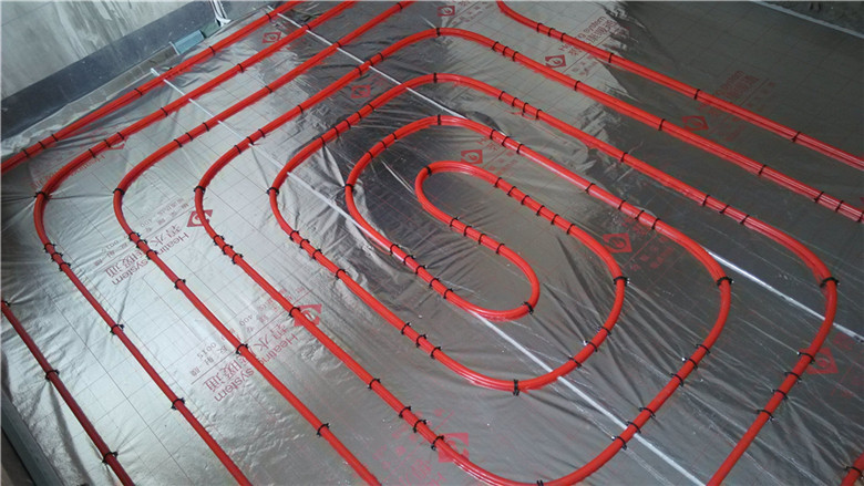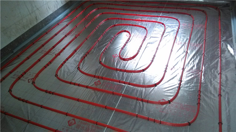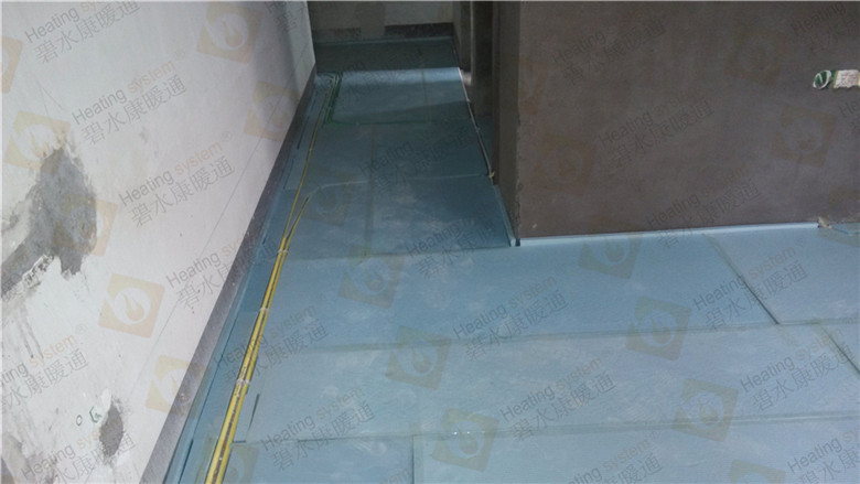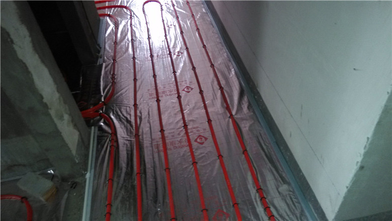 3.鋪設(shè)反射膜后,再鋪設(shè)PE-RTⅡ代地暖專用管,用專用卡釘固定盤繞(雙管螺旋鋪設(shè),平整,彎曲無變形);